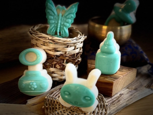 Jabón elaborado con glicerina vegetal y aceite vegetal de coco, aceite esencial de eucalipto, miel de abeja, aloe vera, vitamina E, manteca de karité , hidrata, humecta y refresca la piel del bebé, es hipoalergénico, aportando una piel fresca tierna. Regula la producción de oleosidad, equilibra el ph.