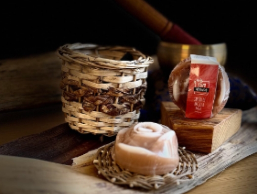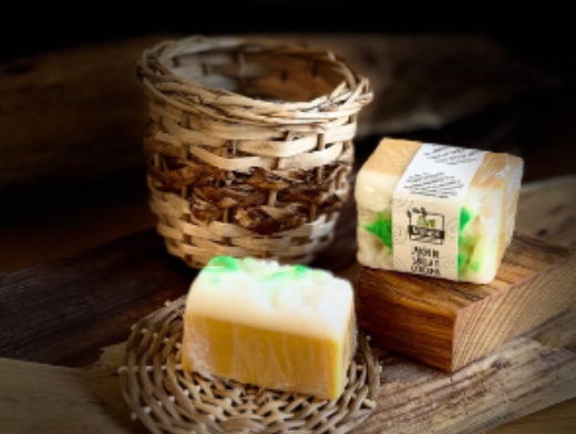 Jabón elaborado con glicerina vegetal y cute vegetal de coco, coleoncul de roso y le vrchu, vitamina E, manteca de karité, aporta luminosidad, estimulaciación y elasticidad en la piel desinflama e hidrata la piel, antioxidante, cicatrizante, regenera los daños causados por los rayos ultravioleta.