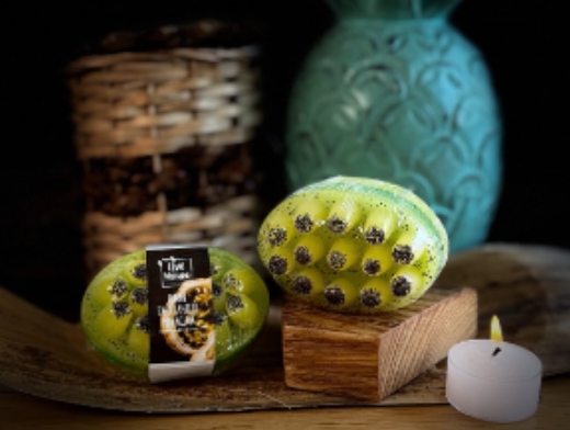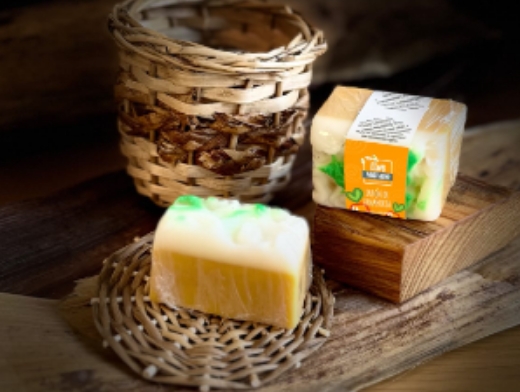 Jabon elaborado con glicerina vegetal y aceite vegetal de Cacay ace te esencial de maracuyo y naranja vitamina E, manteca de karite, previene el envejecimiento prematuro de la piel, elimina células muertas, limpla y exfolia la piel, desinflama e hidrata la piel, antioxidante, cicatrizante regenera los daños causados por los rayos ultravioleta